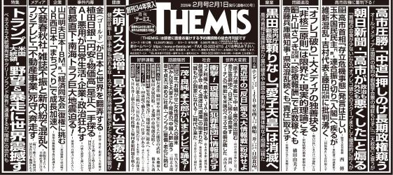 最新号 2026年2月号 トランプ米大統領‐野望&暴走に世界震撼す/高市圧勝‐「中道」押し退け長期政権窺う/植田日銀‐「円安&物価高」是正へ一手探る/黒田宮内庁新長官頼りなし「愛子天皇」は消滅へ/失明リスク急増‐「見えづらい」で治療を! 商品に関するお問い合わせはこちら